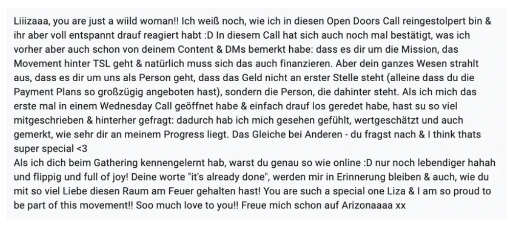 She is the embodiment of purity and clarity who stepped into becoming a writer full time. We love how she implemented everything she learned in TSL in her life and nows truly stepped into living her best life.